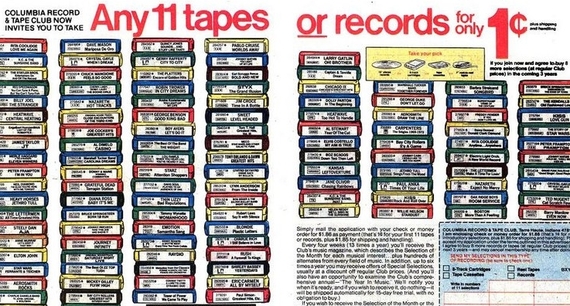 Twelve tapes? For ONE PENNY? I have vivid memories of the epic day in the ’80s when I received a box filled with Hall and Oates, Julian Lennon and Huey Lewis and the News. I also have vivid memories of my parents reeming me for not mailing back the little postcard in time with the box marked saying please do not send me this months selection of Live Bullet by Bob Seger. I’m pretty sure I still owe Columbia House thousands of dollars.