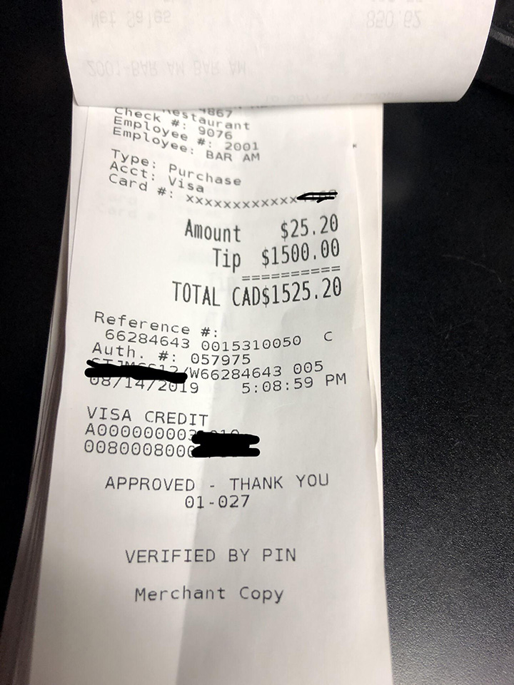 A bartender in Canada was tipped $ 1,500 so that she can attend her brother’s wedding across the world.