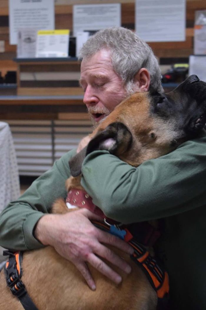 A photo of Sampson reuniting with his owner at the Chico Airport Animal Shelter was posted on social media by the North Valley Animal Disaster Group.