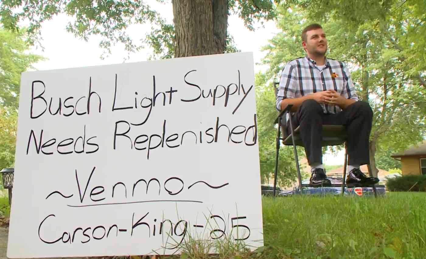 The former Iowa State University student hoped to scrape together some party money for himself and his friends on Game Day, so he made a sign emblazoned with his Venmo e-banking account name and the words: “Busch Light Supply Needs Replenished.”