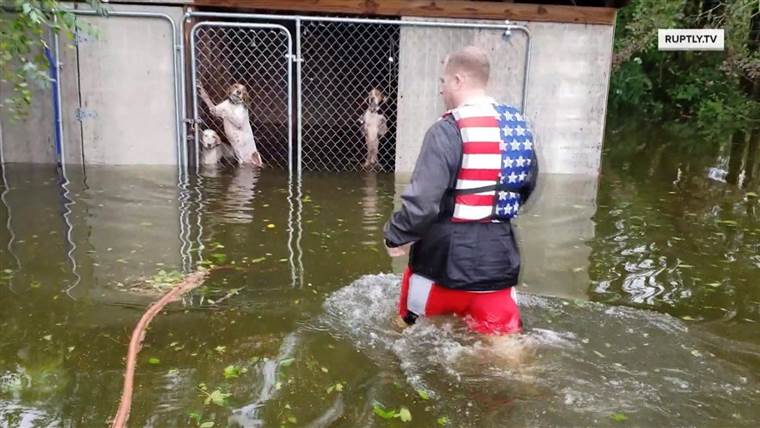 Hero volunteer rescues 6 dogs from rising Florence floodwaters