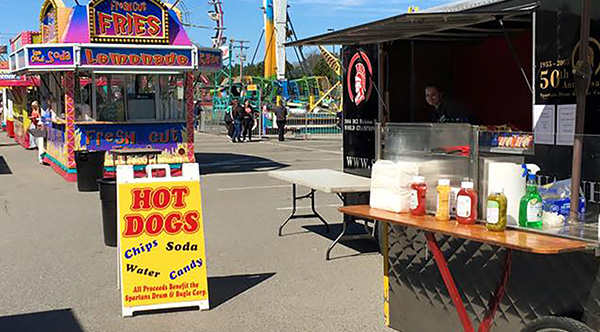 The vendor is only too pleased to oblige, wraps both hot dogs in foil and hands them over the counter.