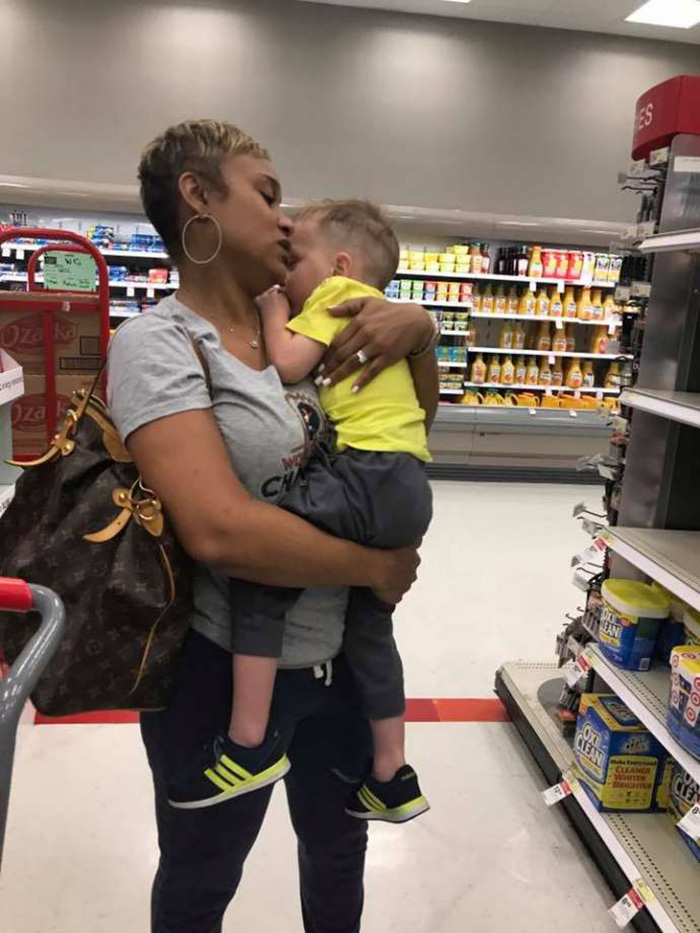 “She walked with me while I got the essentials needed for the day and kept hold of my toddler while he calmed down,” Paterson wrote on the private Facebook group, Moms of Pearland. “She saved me today moms!!! I am so sleep deprived and was running on empty. A little kindness and understanding goes a long way.”