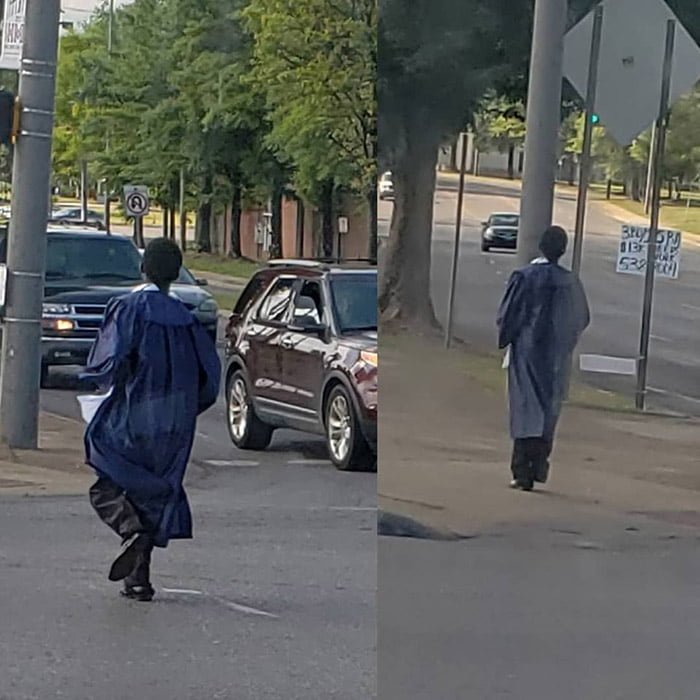 A photo of the 19-year-old went viral last week when a bus driver snapped a picture of him making his way to the bus stop in Birmingham so he could make it to his graduation.