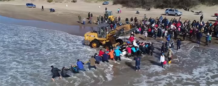 The orca had become stranded on a beach in Nueva Atlantis, Argentina. Members of the Fundacion Mundo Marino, the Argentine Naval Prefecture and the Civil Defence participated in the extensive 20-hour rescue effort.