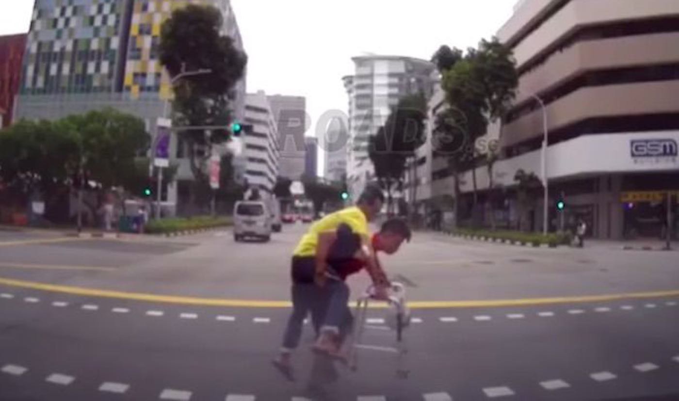 The senior had slowly been making his way through a busy intersection in Singapore when the traffic light turned green.